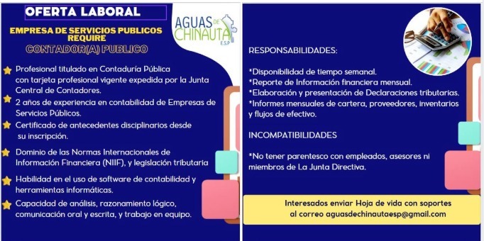 Se requiere Auxiliar Contable. Buscamos una persona organizada, responsable y con conocimiento en NIIF, software contable y manejo de herramientas ofimaticas. Convocatoria abierta hasta el 7/11/2025.